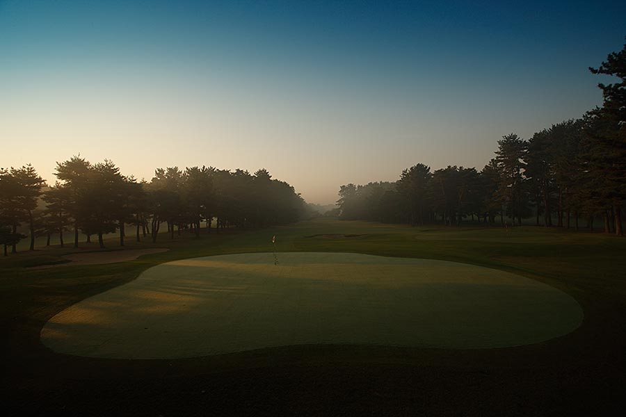 中央のバンカー、またはグリーンオーバーや左に落とすとパーセーブは難しい。